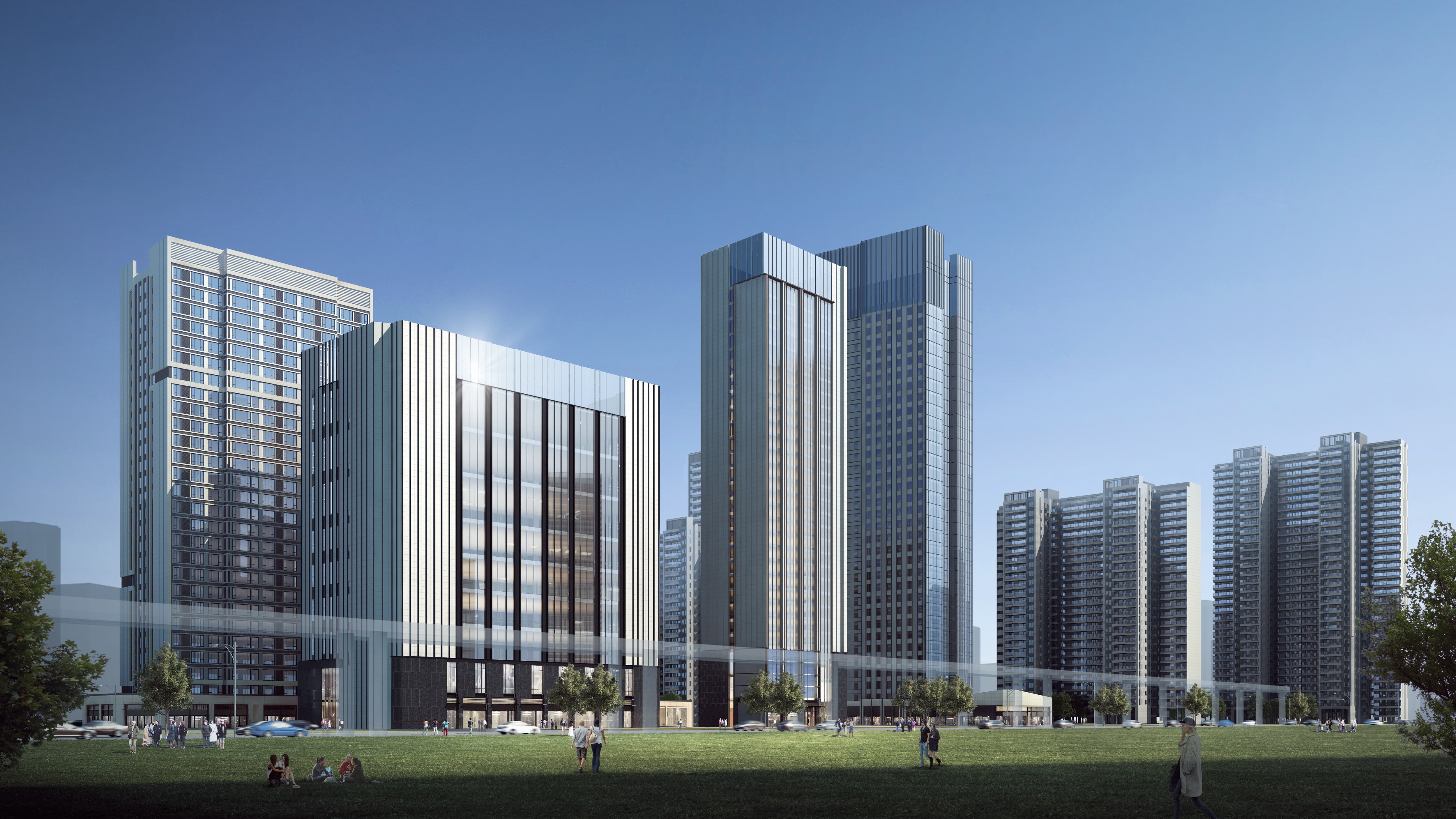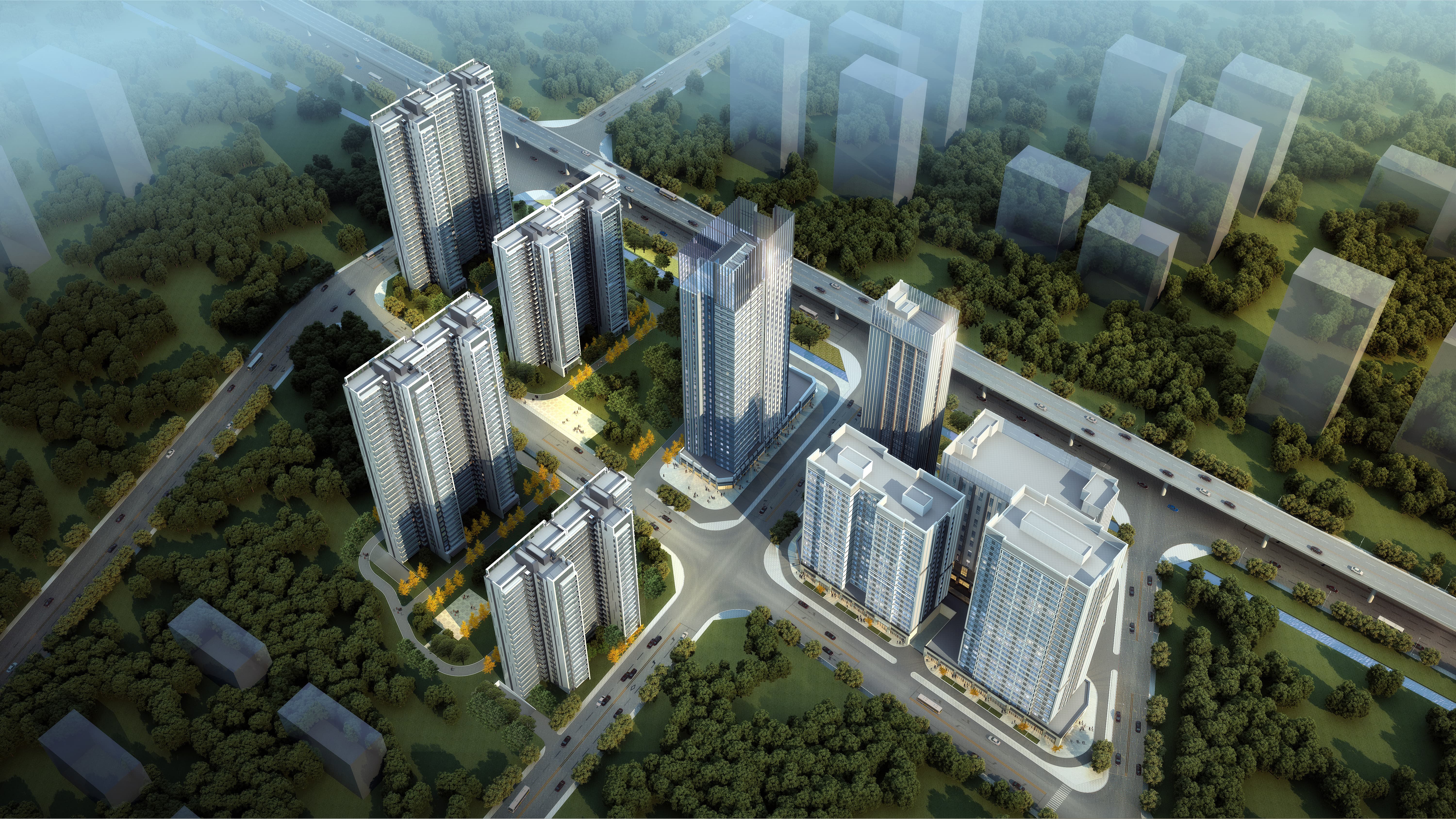 要在如此“含金量”十足之地建造一个功能复合型城市空间,将高端住宅、办公、酒店、宴会楼及商业等多种不同功能空间进行有机组合,设计希望巧妙地寻求繁华都市与绿色科技生活的融合点,为城市精英人群,造一方恰如其分的绿色生活城市社区。